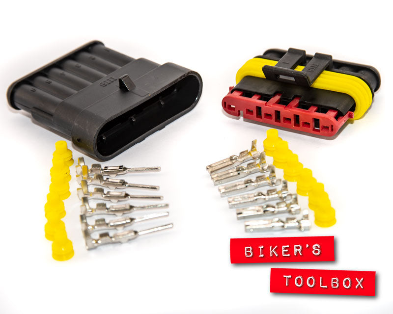 Superseal Electrical Connectors are compact high quality connectors designed for applications where a waterproof joint is required (waterproof to IP67) Suitable for cable sizes 0.5mm² to 1.5mm². Complete male and female kit with terminals, seals and housing. To crimp the terminals use