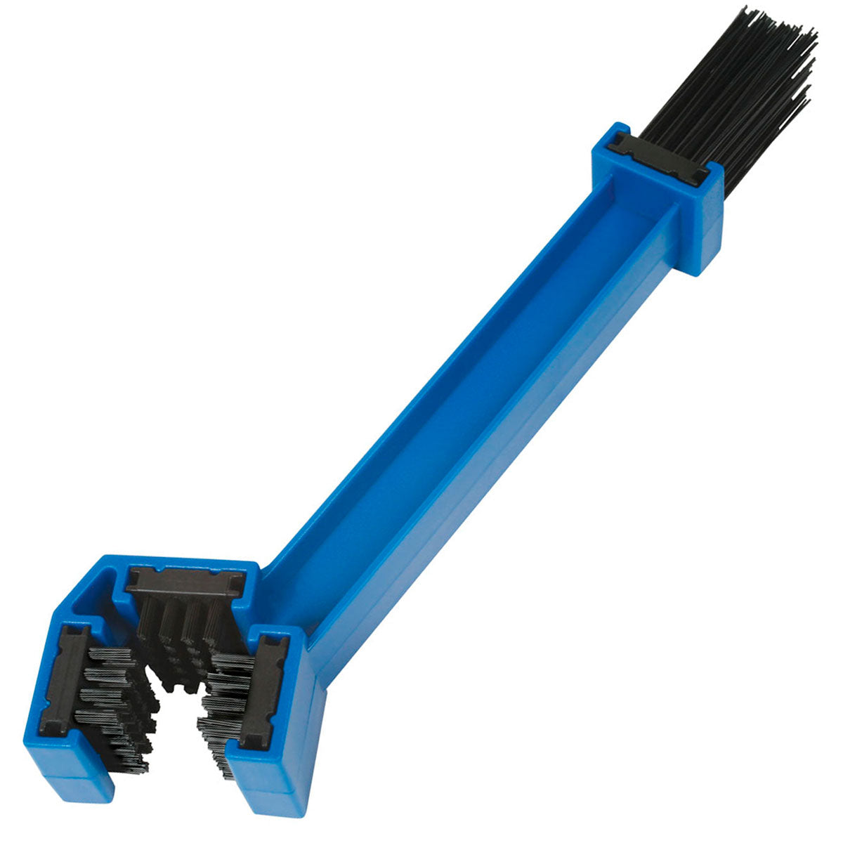 Blue plastic brush to clean the drive chain. Double headed brush to really get into the crap picked up by a well oiled chain. It is suitable for use with 'o' and 'x' ring chains. Keep those gold chains ... gold!