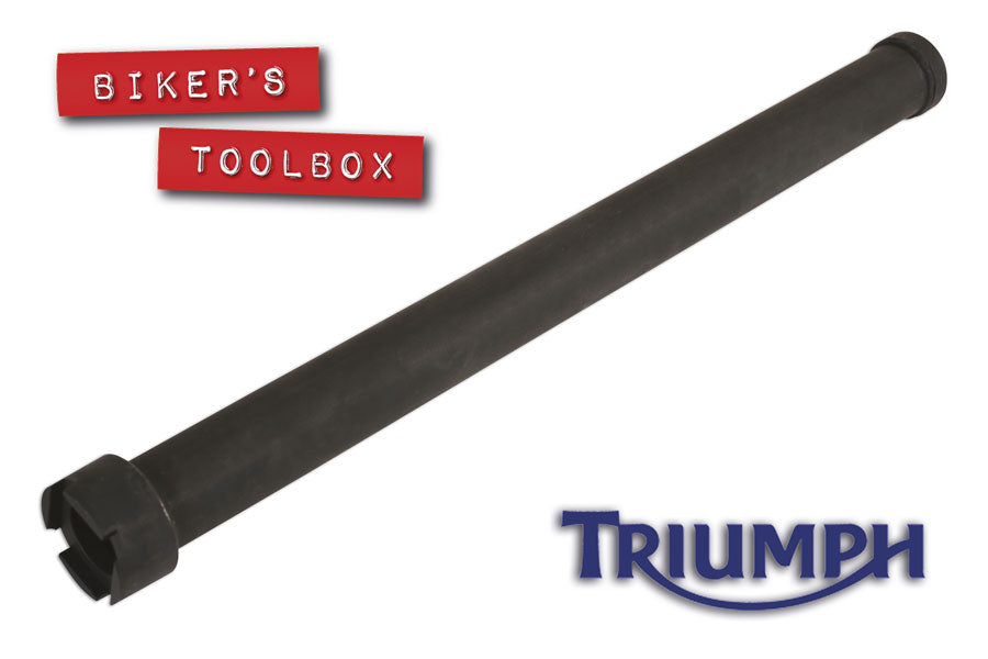 Used to hold and undo the damper tube when disassembling the forks on Triumph Tiger Explorer 2012-2014 and Tiger Explorer XC 2012-2014 Replaces Triumph factory tool T3880622 Use with which replaces Triumph factory tool T3880623 Use with 1/2"drive socket wrench and 27mm spanner. Industrial chrome finish.