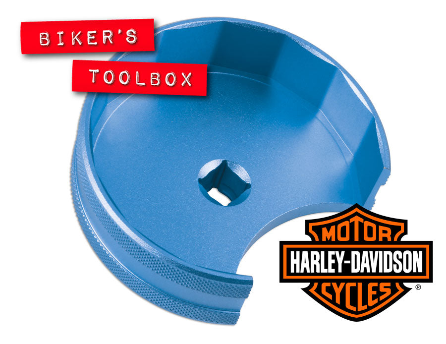 This is a specially modified oil filter socket with a cutout to miss the crank position sensors on Harley Davidson Vee Twin engines.