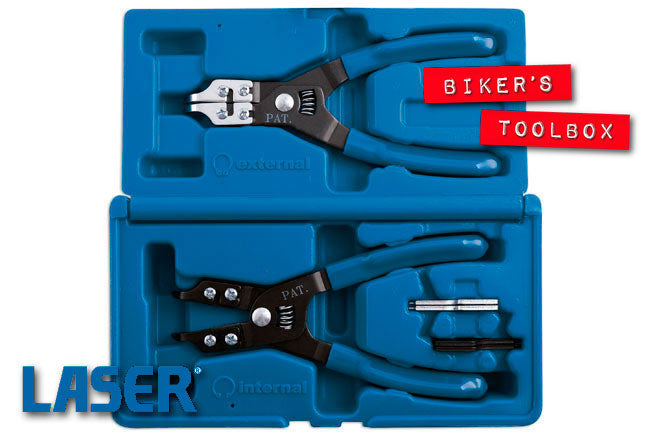 This astonishingly good value set has external and internal circlip pliers in a case. It comes with 4 sets of tips for straight and angle profile in different sizes, which have a patented quick change tip design.