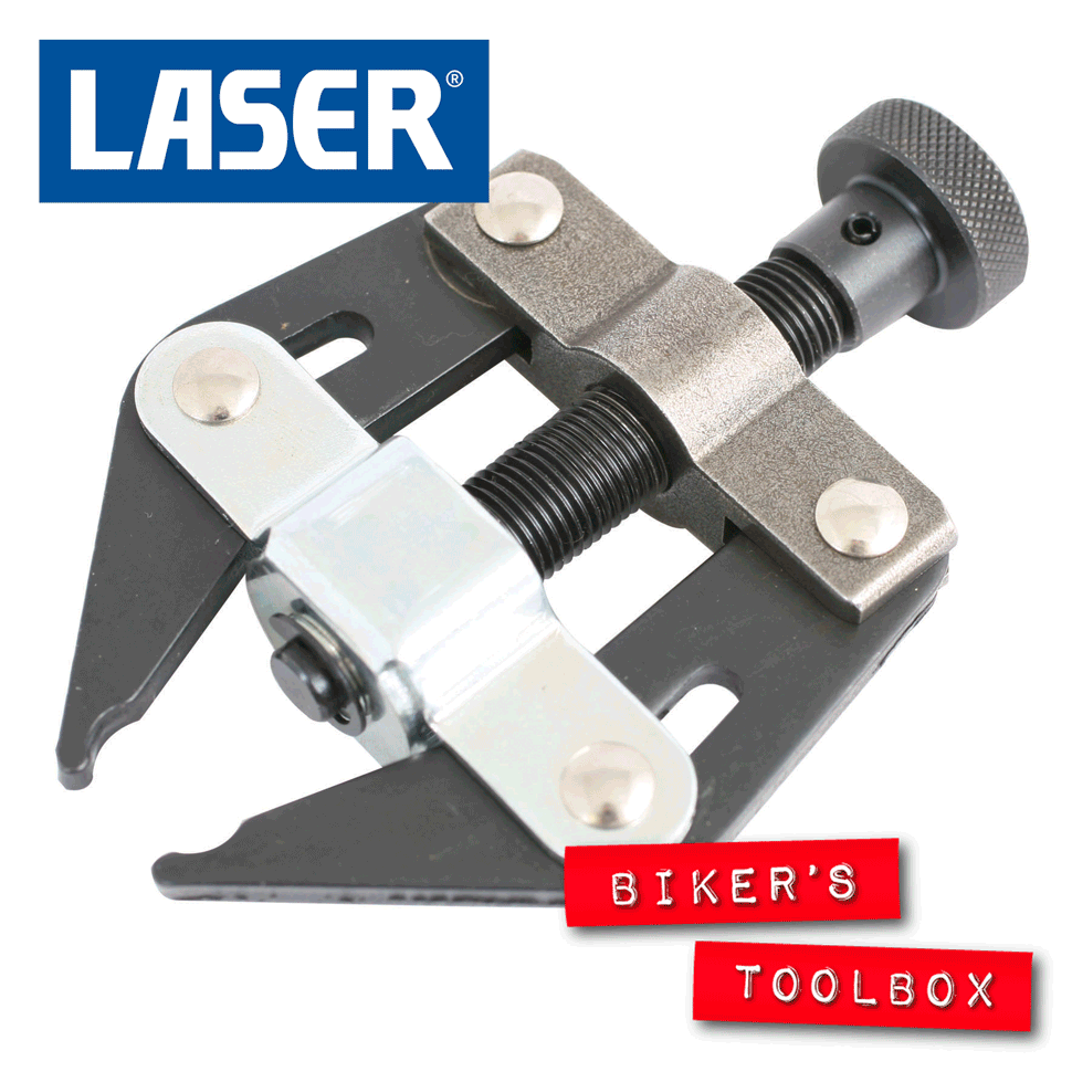 A motorcycle chain puller for removing and replacing chain links. Used with chain breakers and riveting tool.