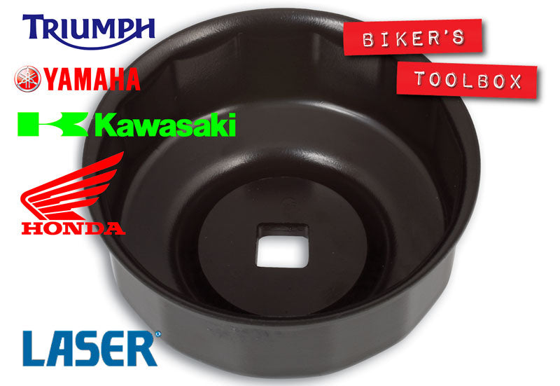 3/8" drive cup style oil filter wrench suitable for use on many modern motorcycle engines, including Kawasaki, Honda, Polaris, Yamaha and Triumph. This is the product we use in our own workshops as you can easily tighten the oil filter to the correct torque setting using a torque wrench.