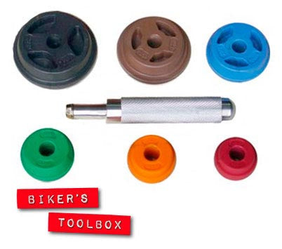 Aluminium handle with plastic fittings for 9 different bearing / oil seal sizes 39.5mm, 44.5mm, 50mm, 59mm, 63mm, 65,mm, 72mm, 76mm & 81mm.