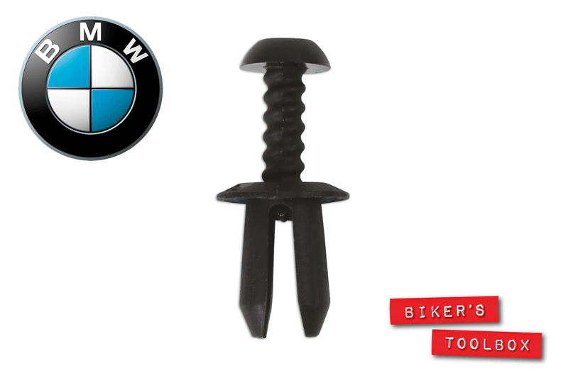 Motorcycle trim clip. Dimensions - Head 12mm | Length 12.7mm | Fits hole size 7.0mm. Replaces BMW 51168197908. Material - Black Polyamide 66.