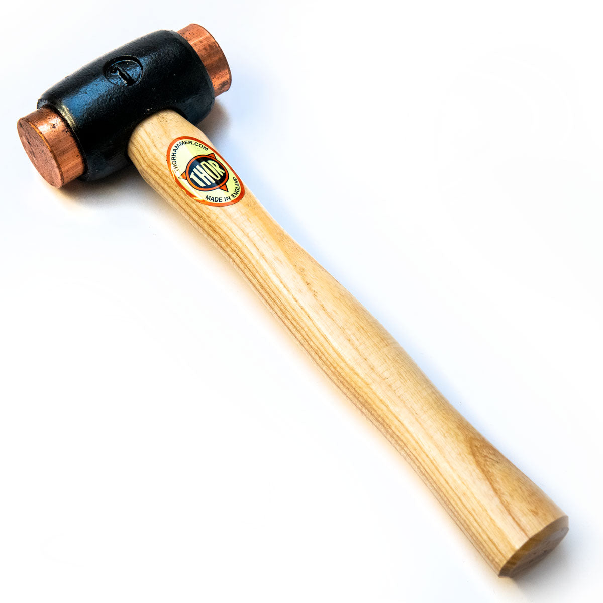 Thor copper hammers have a malleable Iron head fitted with two cylindrical faces of pure electrolytic copper on a wooden shaft. Available in 6 different weights.