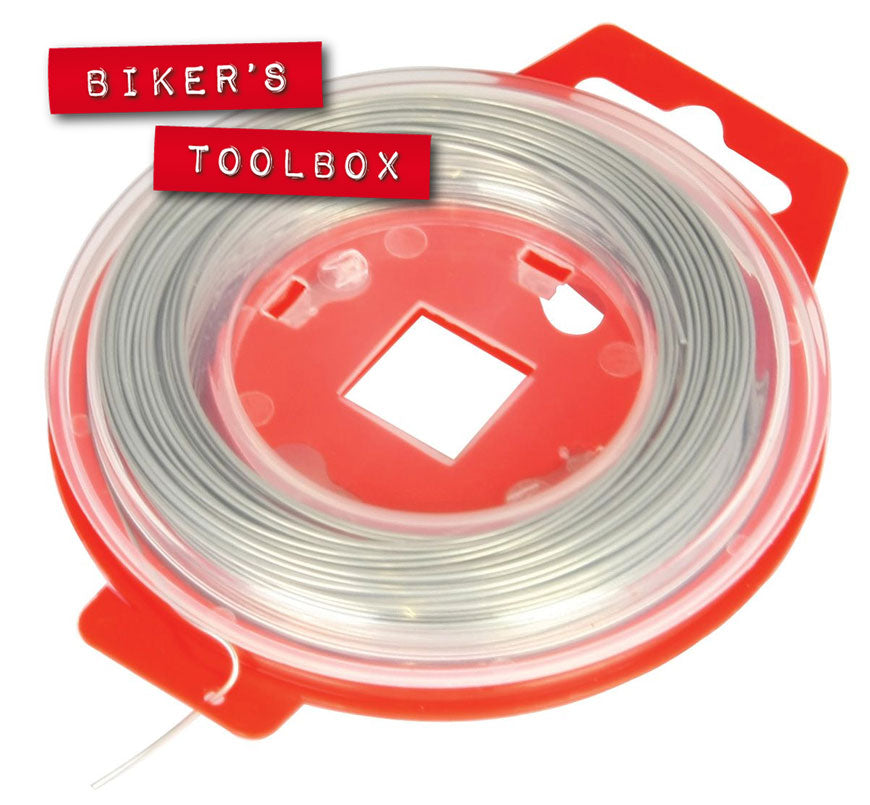 Safety locking wire used with the above pliers to secure fasteners on motorcycles that could otherwise come undone due to vibration. Mandatory for the majority of racing motorcyles.
