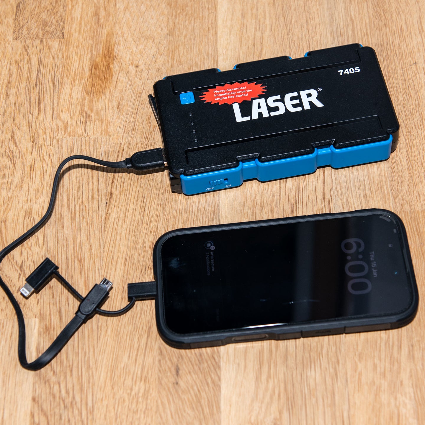 - Can also be used as a power bank for a laptop/phone; includes 2 USB ports, 1 to 3 USB cable and 2 smart jumper clamps.