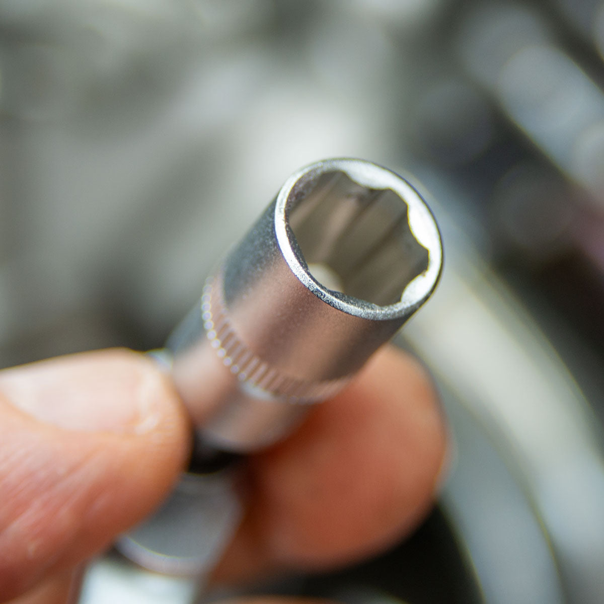 - 6 x 1/4"drive sockets x single Hex (6pt) wall-drive: 5, 6, 8, 10, 12, 13mm. Length: 25mm.