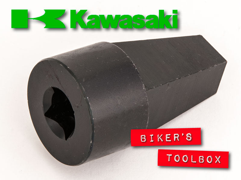 This tool is used to hold the damper rod still in forks when dismantling, so that the bottom bolt can be undone. Once the bottom bolt, usually a cap screw, is released the fork stanchions can be removed from the bottom slider. This tools is commonly used on various KX, Z and KZ Kawasaki models. The back takes a 1/2" drive socket bar. The cone is from 15 - 26mm. The round boss is 36mm in diameter. <