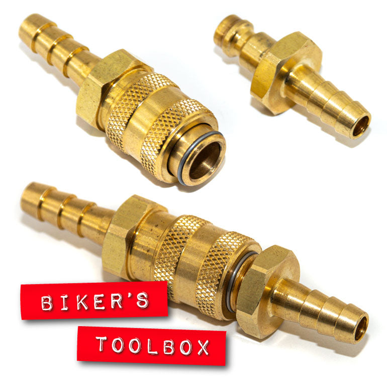 HIgh quality precision machined quick release fuel line coupler machined from billet brass. Has one way valve on the fuel tank side so that when decoupled the fuel stays in the tank not all over your workshop. Can be used on high pressure pumped systems up to 10 Bar.