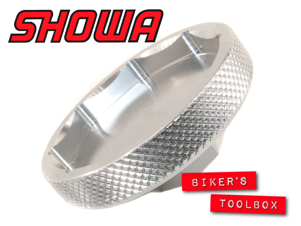 Anodised aluminium fork cap tool for 45mm Showa 8 sided fork caps. Use with 17mm socket or spanner.