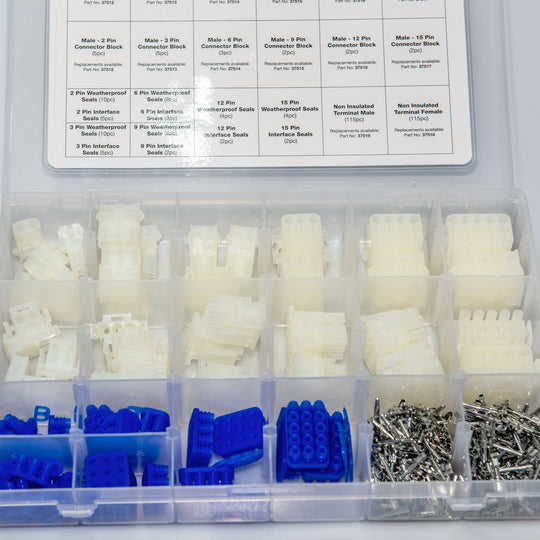 Superseal Electrical Connectors are compact high quality connectors designed for applications where a waterproof joint is required (waterproof to IP67) Suitable for cable sizes 0.5mm² to 1.5mm². Complete male and female kit with terminals, seals and...Regular price £8.30Regular price £8.30 -