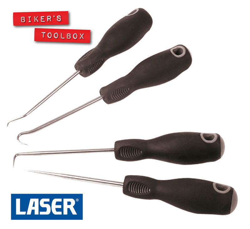 -12%This four piece set includes straight pick, small angle hook, 90° hook and full hook for gaskets, O rings, split rings etc.