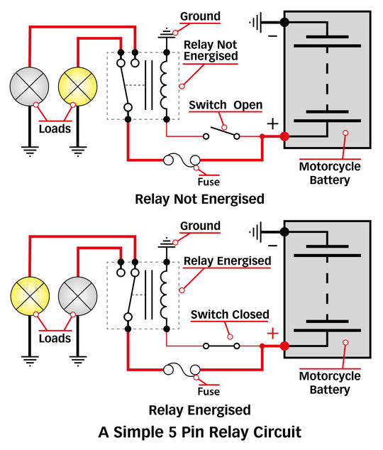 This relay is the same as the one above except that when the coil is energised by the handlebar or other switch, it can be used to turn off another load as well as switching on...Regular price £5.99Regular price £5.99 -